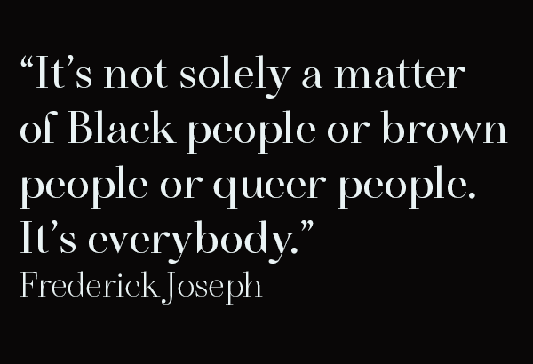 Author and activist Frederick Joseph trains his eye on combatting the patriarchy, confronting censorship, and building community.