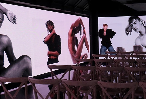 Instead of walls, the guests and panelists were surrounded by floor-to-ceiling LED screens. A feature of the W1 Curates facilities, the screens were lit up with short videos from the shoot so that the models were constantly on display. The immersive atmosphere made it clear that everyone was here to celebrate these fashion images, and to hear the models talk more about their own experiences of masculinity and self-acceptance.