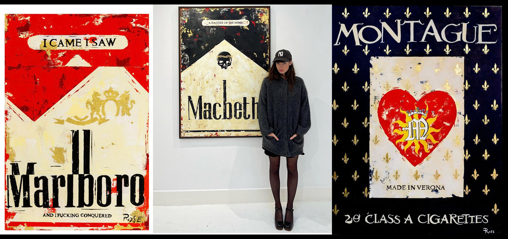 While painting packs of Marlboros, Rose began to draw parallels between the themes of the classic Shakespeare plays she had studied and the machiavellian techniques of today’s biggest tobacco companies – ‘there are all these interesting parallels between themes in Shakespeare – like Macbeth’s themes of mortality and greed, that echoed the idea of these tobacco companies becoming the kings of industry’ Rose explained.