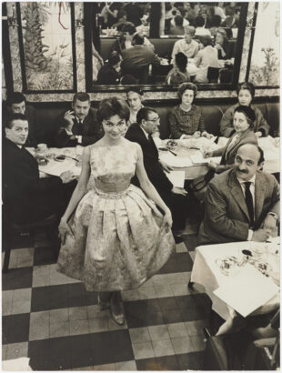 Black and white images of Gaby Aghion in the desert near Alexandria, Egypt, photographed by Raymond Aghion, ca. 1940–45. Courtesy Philippe Aghion and Chloé Archive, Paris. Autumn–winter 1958 fashion show at Brasserie Lipp. “Mood of the moment” exhibition images by Dario Lasagni. All images courtesy the Jewish Museum, NY.